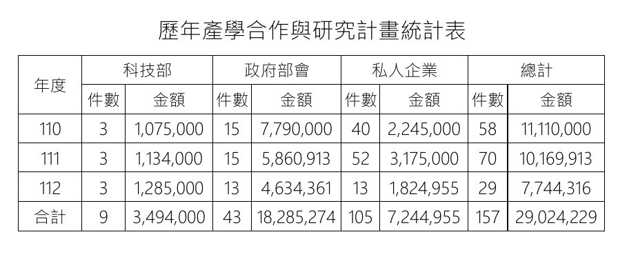 管院近3年執行產官學合作計畫如下表,總件數為157 件,金額約2900萬元,其中科技部研究計畫有9件、政府部會計畫有43件,私人企業的產學合作案有105件。