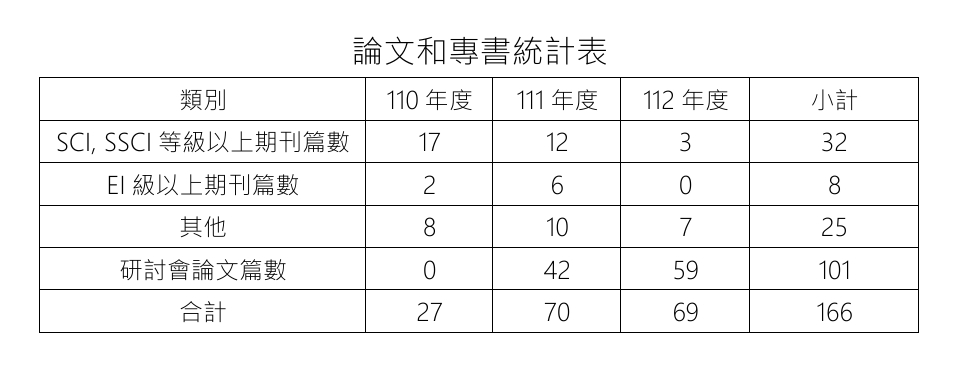在學術研究方面管院教師研究著作三年共出版期刊論文65篇,其中SSCI或SCI 等級期刊論文32篇,EI等級期刊論文8篇,研討會論文共101篇。